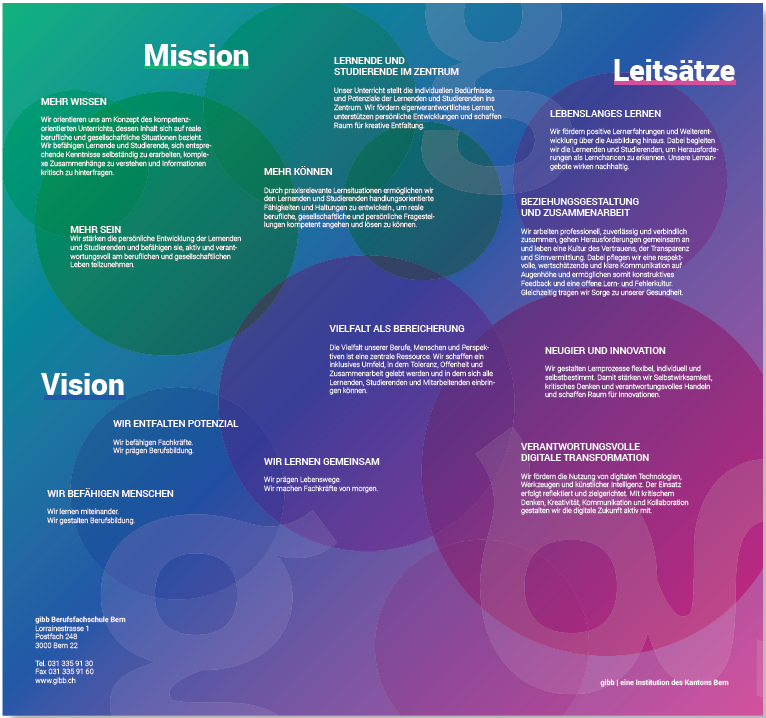 mehr sein: Wir stärken die persönliche Entwicklung der Lernenden und Studierenden und befähigen sie, aktiv und verantwortungsvoll am beruflichen und gesellschaftlichen Leben teilzunehmen.
